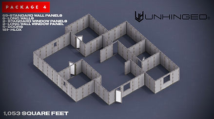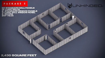 An advanced modular configuration intended for larger interior builds and more detailed layouts. Supports up to 5 rooms and approximately 700–1,000 square feet. This package provides additional flexibility for building more complex footprints and incorporating greater interior detail, while remaining fully modular and adaptable.